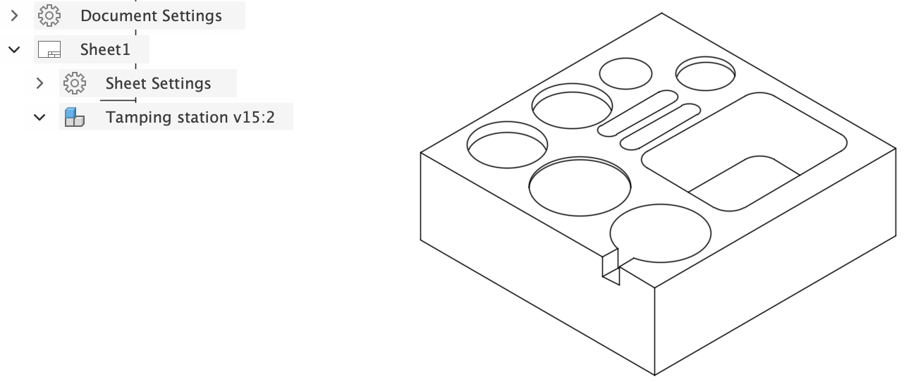 I wanted to find a better way to organize the coffee equipment used with our espresso machine. We had ended up placing everything on top of the machine, which quickly became cluttered, and the tools also became hot from the heat. Inspired by designs I found online, I decided to create a tamping station. The station would organize the equipment while also providing a stable surface for tamping espresso in the portafilter, eliminating the need to balance it by hand. Rather than ordering a tamping station online, I wanted to design and build one myself. I began the process in Fusion 360.