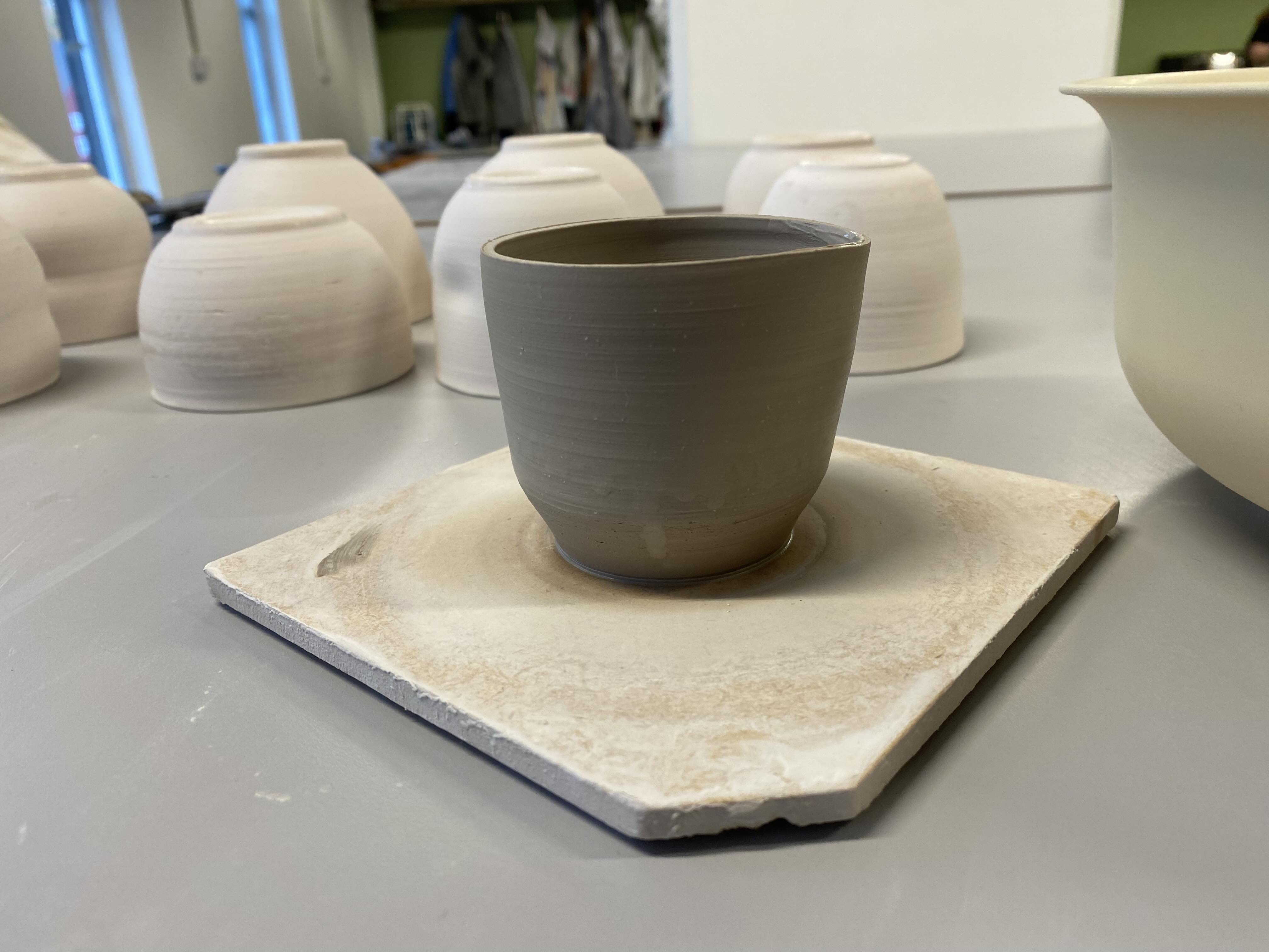 Some essential espresso tools were still missing, so I made them myself. I threw a dosing cup in ceramic, designed to hold 15 grams of espresso beans. The cup features a small spout to make it easier to pour the beans into the grinder.