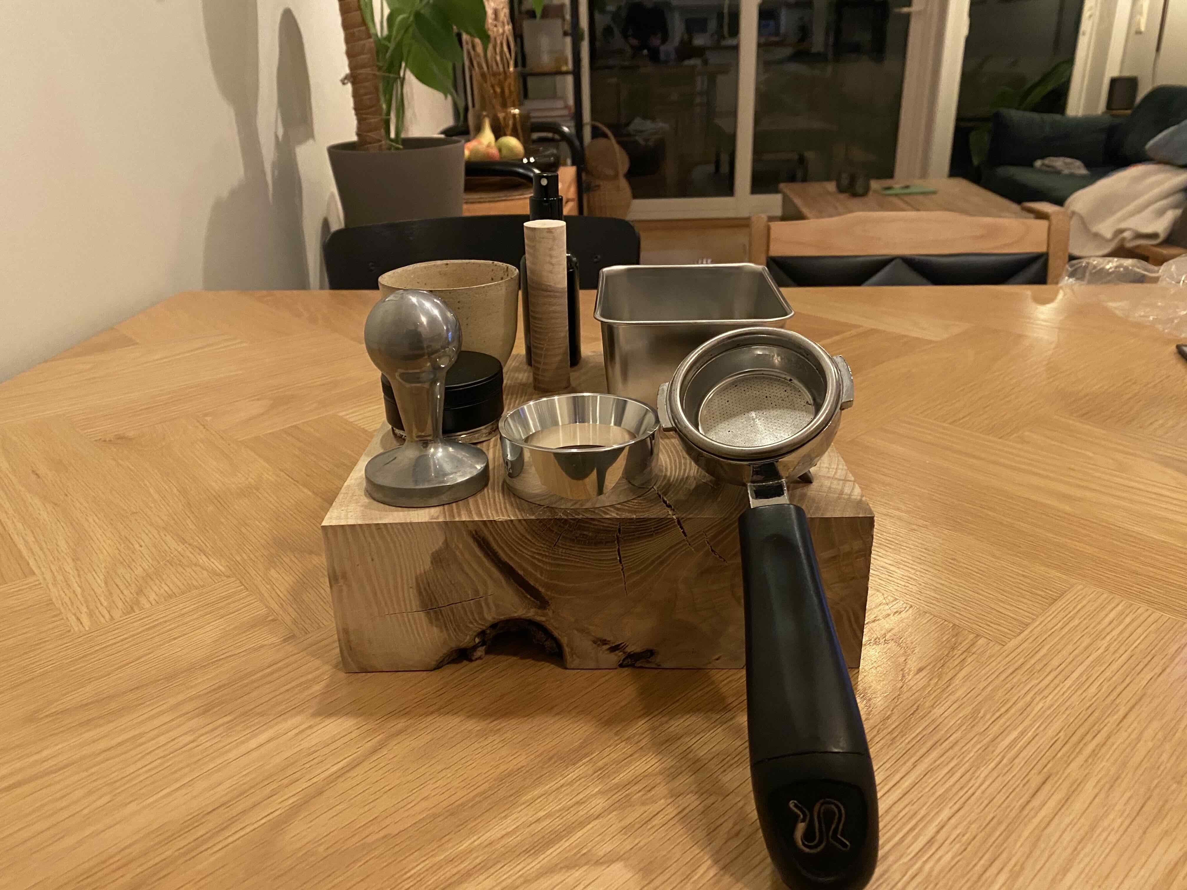 Turn everyday espresso tools into a clean, functional layout.
