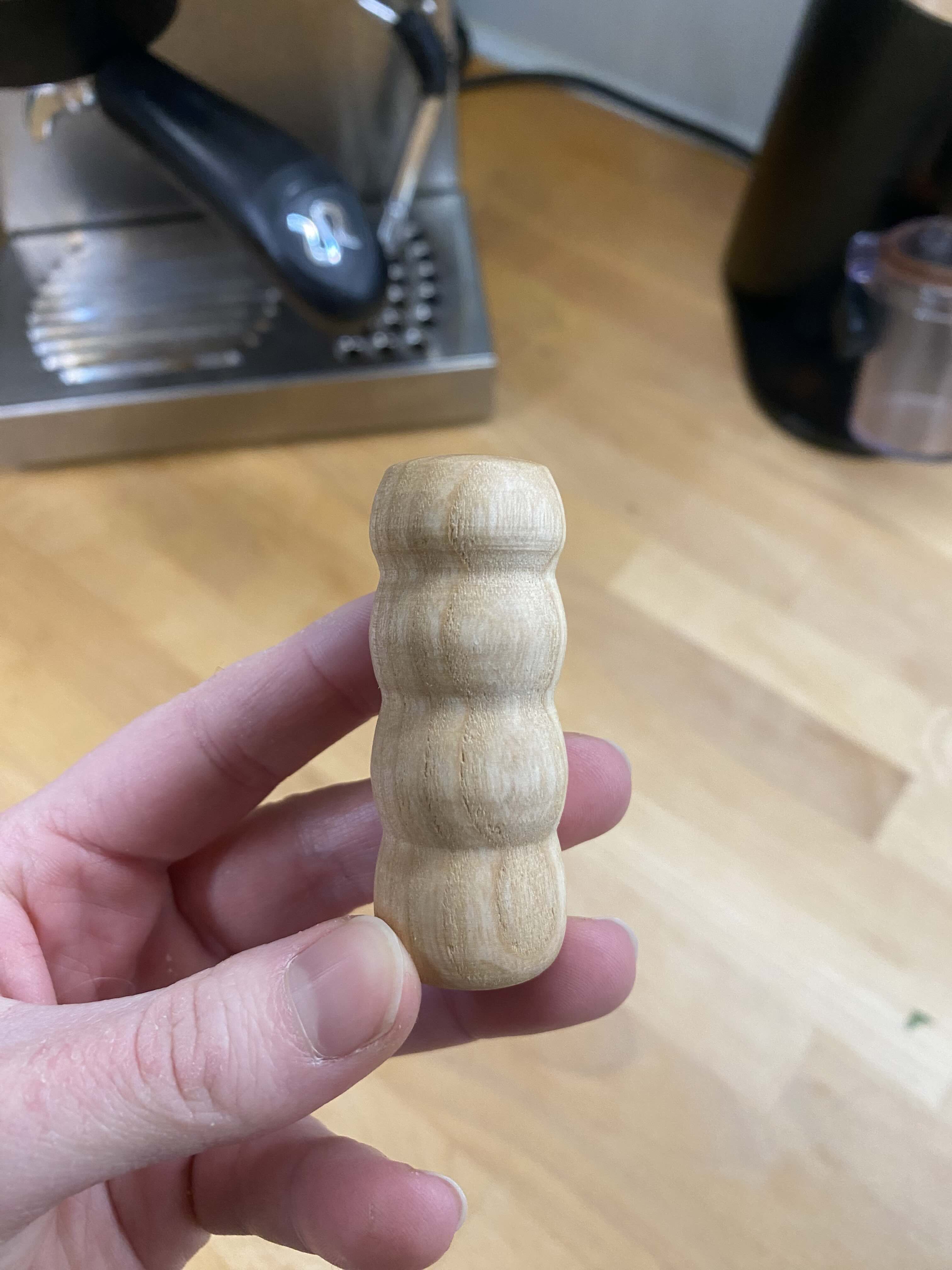 I also turned a wooden handle for a WDT tool (Weiss Distribution Technique), which is used to break up clumps in ground coffee for more even extraction. The needles were added afterward, and a dedicated hole was designed in the tamping station to store the tool.