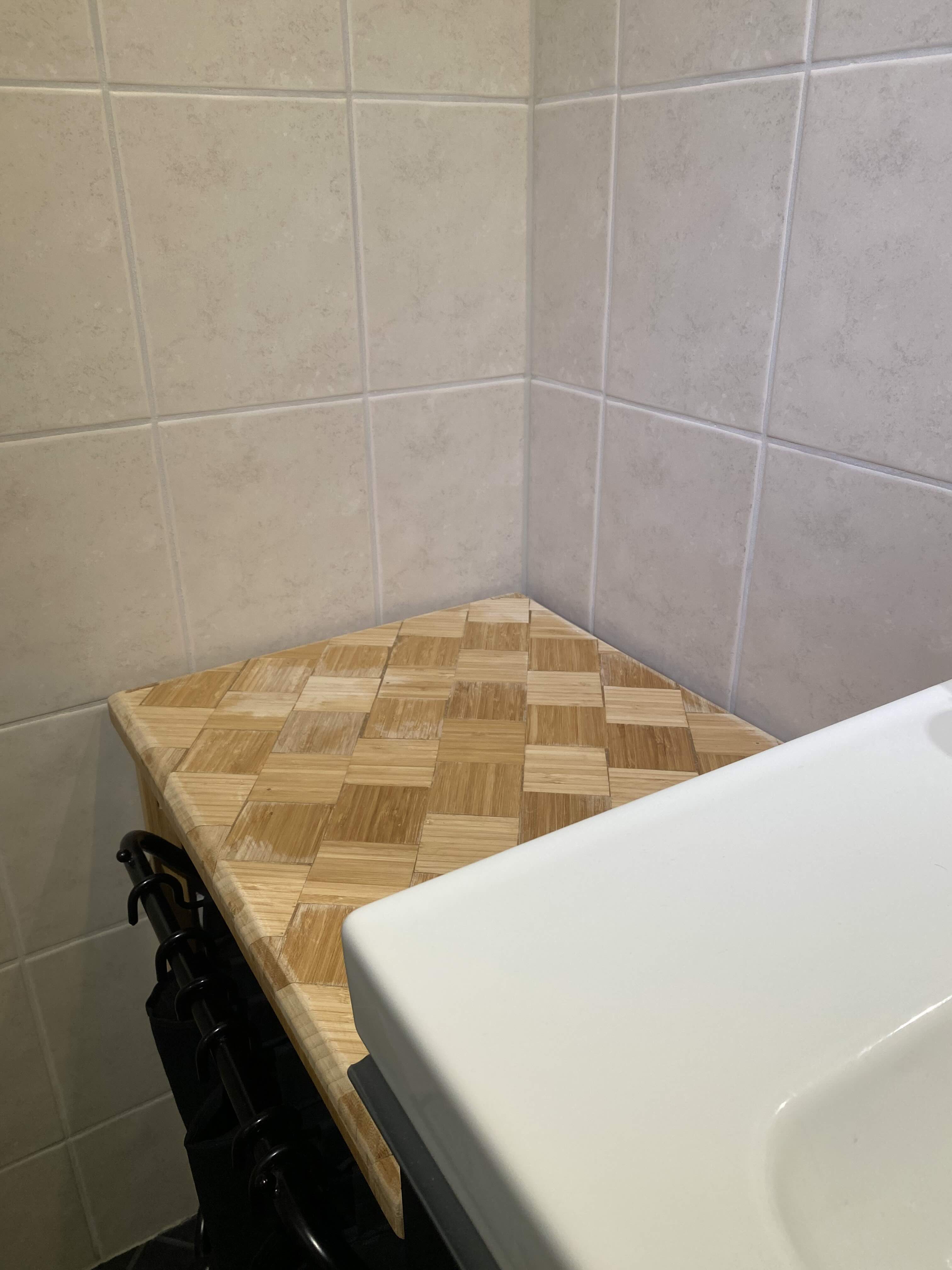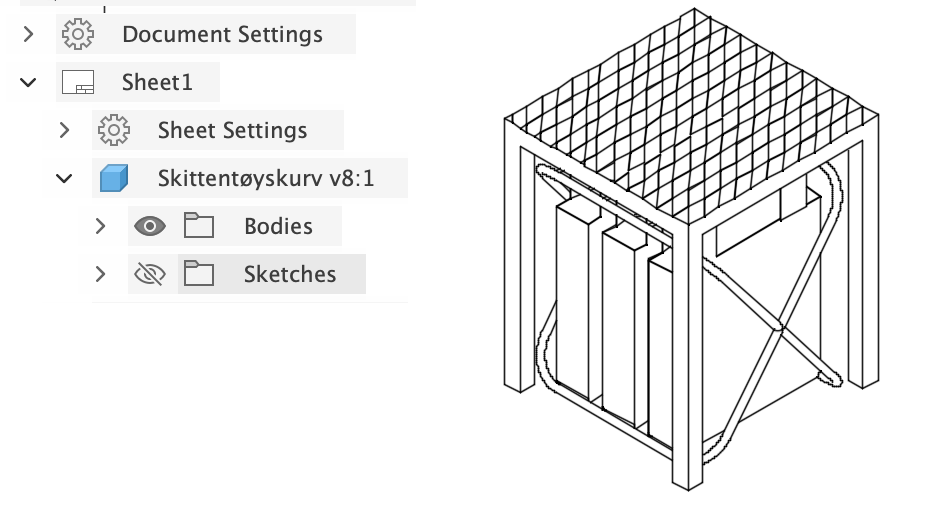 The design was created in Fusion 360. To ensure the table matched the existing bamboo elements in the bathroom, bamboo was also chosen as the material for the laundry table.