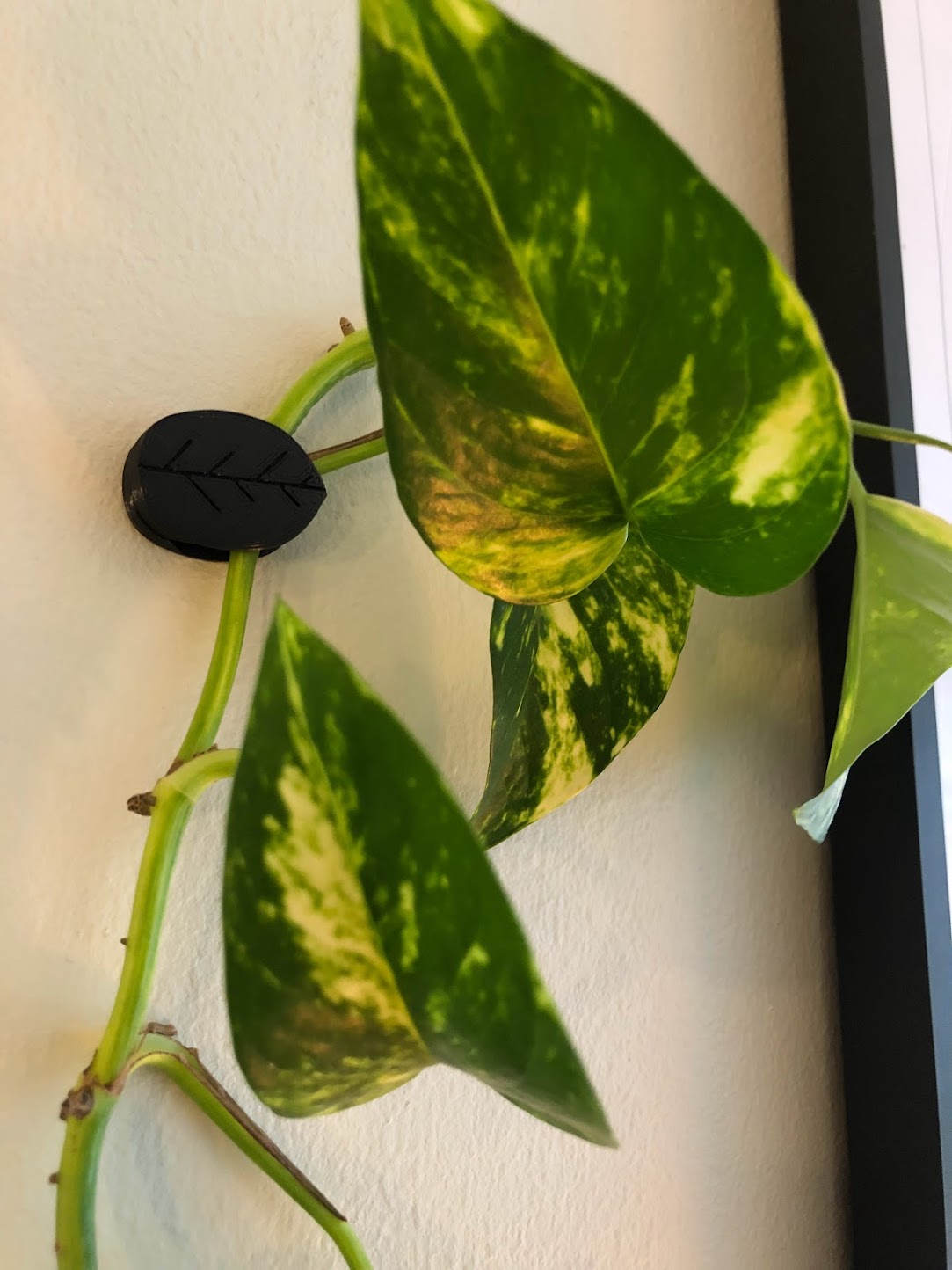 Once printed, the clips were mounted on the wall using double-sided tape. The design is also available on Printables: https://www.printables.com/model/349056-plant-clip.