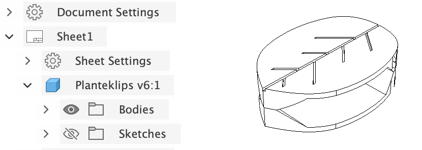 The clip was designed in Fusion 360. A leaf pattern was added to the outward-facing side to enhance the aesthetic, while careful consideration was given to the size of the opening to ensure the plant would not be damaged.