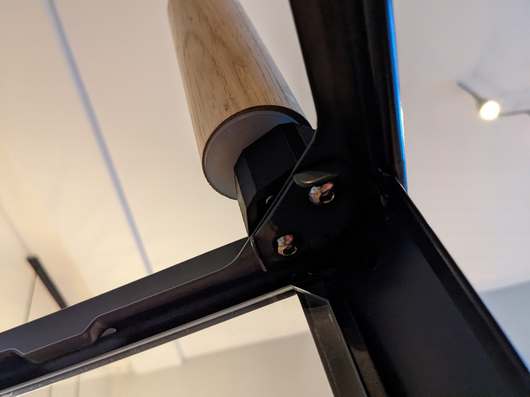 I purchased a cabinet from IKEA through Finn, which fit perfectly into a corner of the kitchen. However, the original legs extended slightly too far out, so I decided to replace them with custom wooden legs. A 3D-printed adapter was designed and printed to ensure the new legs fit the cabinet securely.